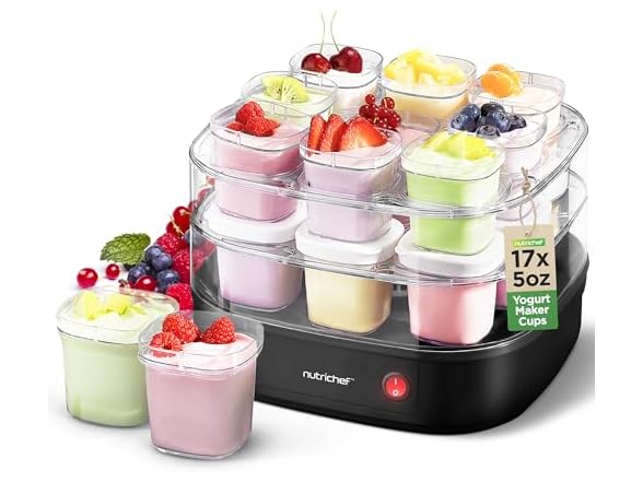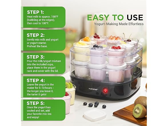 - EFFORTLESS MULTI-FLAVOR CREATION - Craft 17 unique yogurt flavors simultaneously with 5 oz. cups using the versatile yogurt maker machine. Streamline the process for a quick and varied yogurt-making experience.