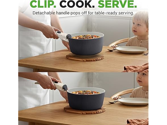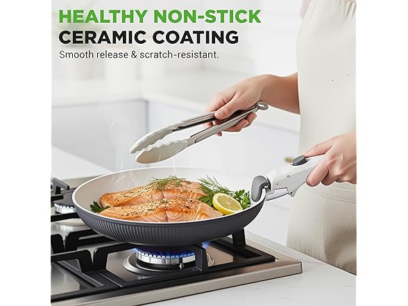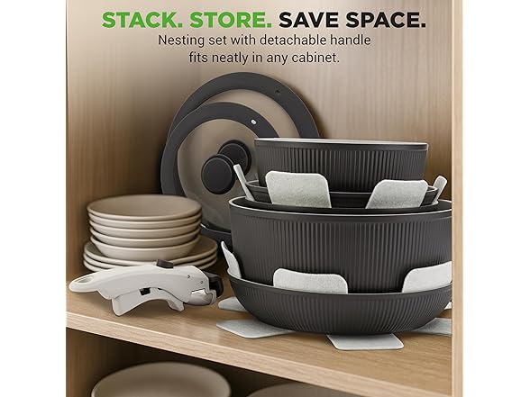 - EASY CLEAN AND SPACE SAVING - With non-stick ceramic surfaces and detachable handles, cleaning is a breeze, and cookware stacks compactly to save kitchen space. No missing parts or flimsy build—just durable, reliable pots and pans designed to last.