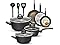 NutriChef Metallic Ridge Line Nonstick Cooking Kitchen Cookware Pots and Pan Set with with Lids and Utensils, 12 Piece Set, Gray