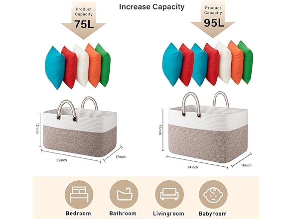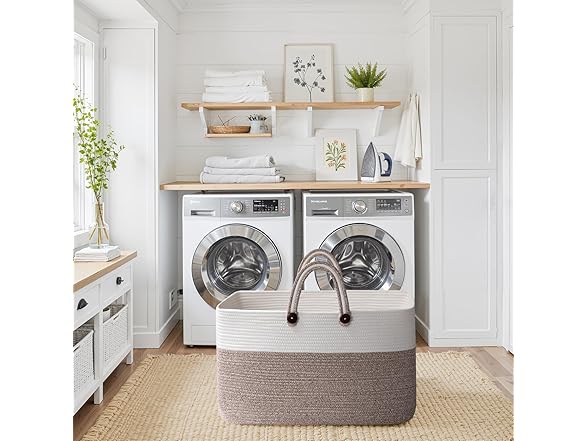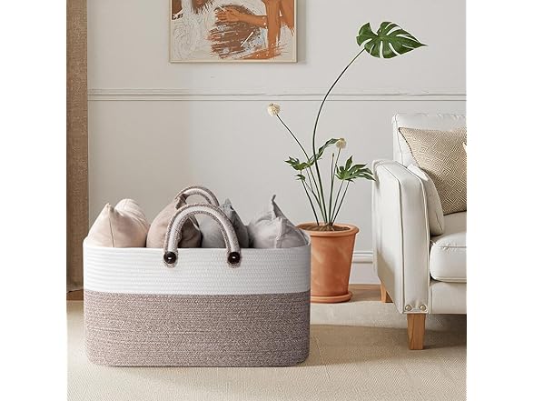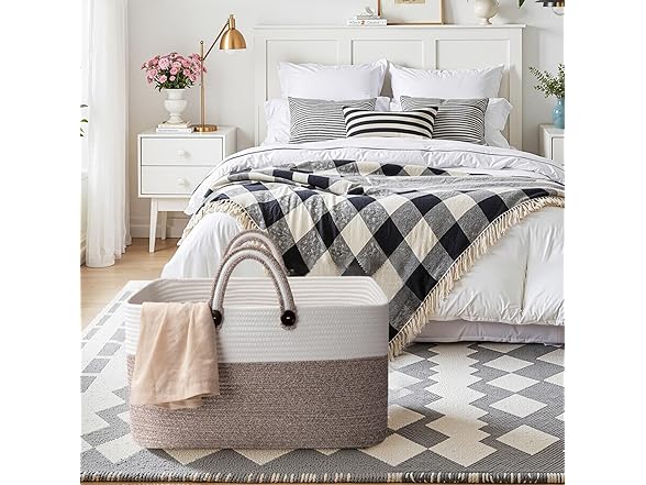OIAHOMY 75L Blanket Basket, Gradient Brown with White