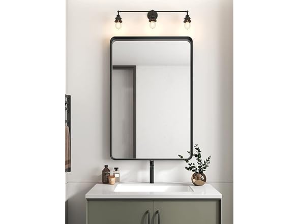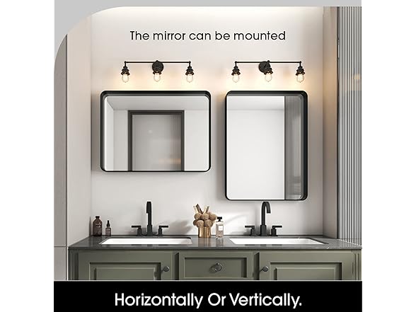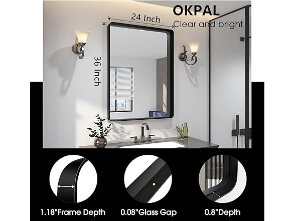 OKPAL Black Bathroom Mirror for Wall, 24x36 Inch Rectangular Black Metal Framed Mirror, Modern Wall Mounted Vanity Mirror for Bathroom, Vertical or Horizontal