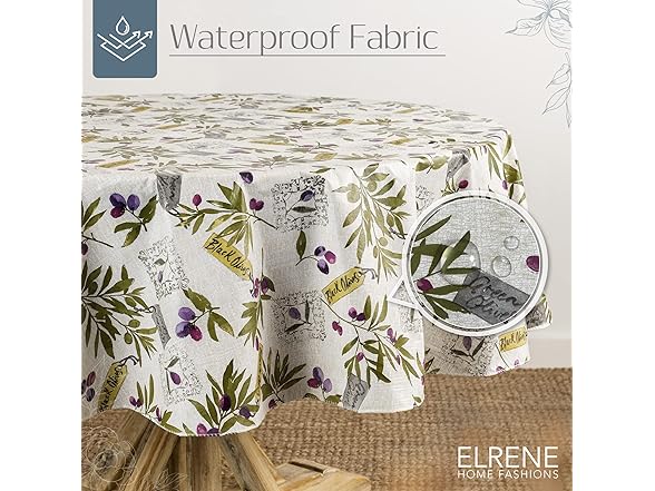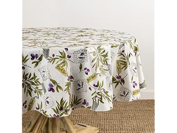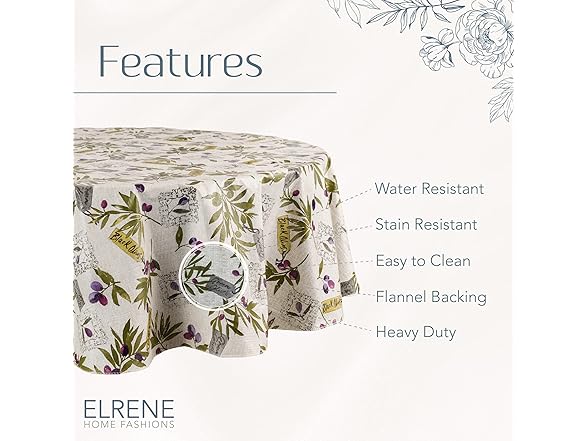 Elrene Home Fashions Montalcino Italian Olive Branches Water- and Stain-Resistant Vinyl Tablecloth with Flannel Backing, 70 Inches X 70 Inches, Round