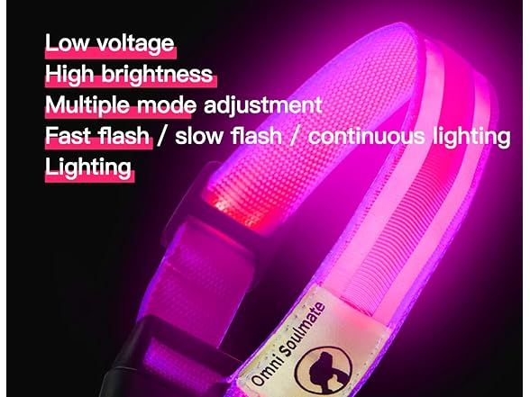 - Waterproof and durable, the Omni Soulmate Third LED Dog Collar is designed to withstand various weather conditions. This means you don't have to worry about the collar getting damaged if your dog gets caught in the rain or decides to take an unexpected dip.