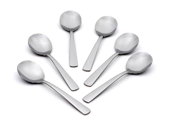- INCLUDES: This Oneida Flatware Set contains 6 soup spoons; The Aptitude line has a simple and timeless charm, perfect for everyday use and casual dining