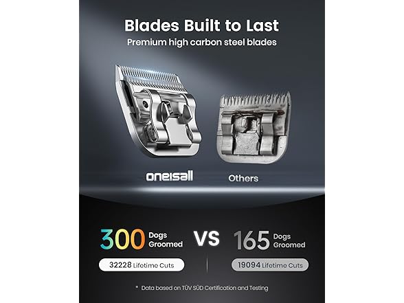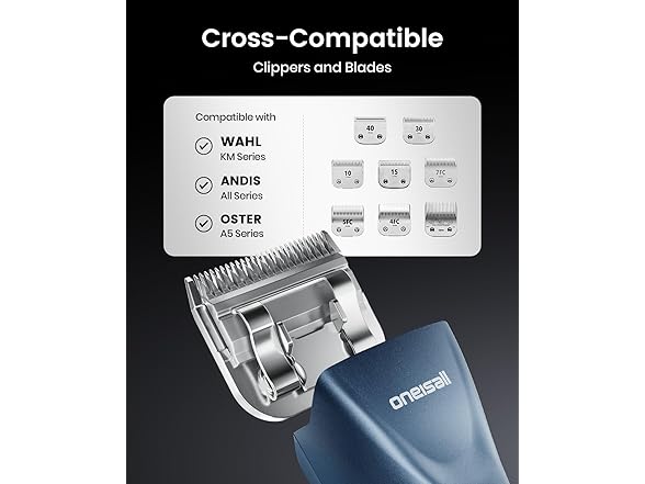๐๐ฌ๐ญ. ๐๐๐ฌ๐ญ๐ฌ ๐๐จ๐ง๐ . oneisall Professional dog grooming clippers is crafted from carbonized steel, the ultra-sharp blade offers superior hardness, durability, and wear resistance, lasting up to 9,000 cuts and grooming as many as 300 dogs with ease. oneisall professional dog clipper is designed for versatility, the detachable blade is compatible with select Andis, Wahl KM series, and Oster A5 series clippers.