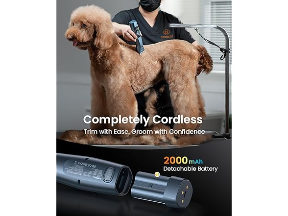 - ๐๐จ๐ฆ๐ฉ๐ฅ๐๐ญ๐๐ฅ๐ฒ ๐๐จ๐ซ๐๐ฅ๐๐ฌ๐ฌ: Unleash your creativity with the dog clippersโ cordless design that gives you complete freedom and superior mobility while grooming. Powered by a swappable 2000mAh battery, oneisall professional dog grooming clippers delivers up to 60 minutes of battery life on a single charge. Quick to recharge and easy to handle, cordless professional dog clippers keeps you moving smoothly from one grooming session to the next.
