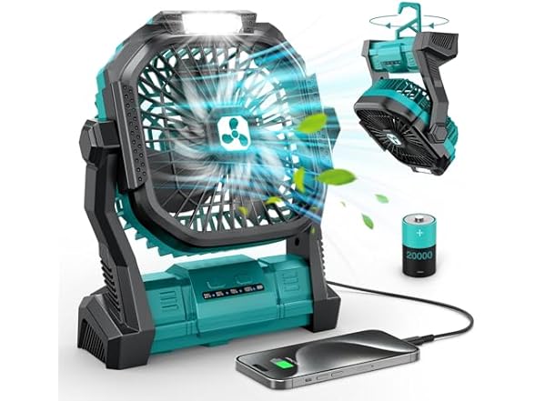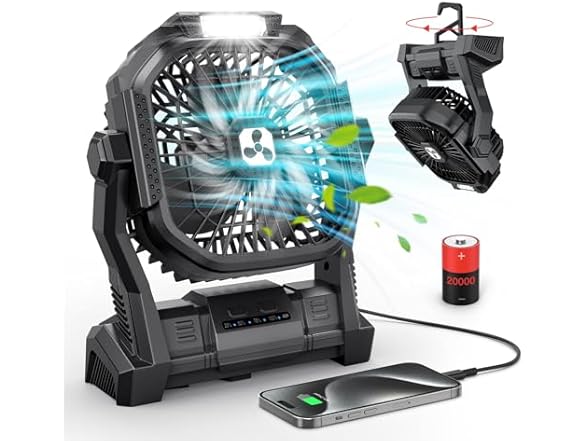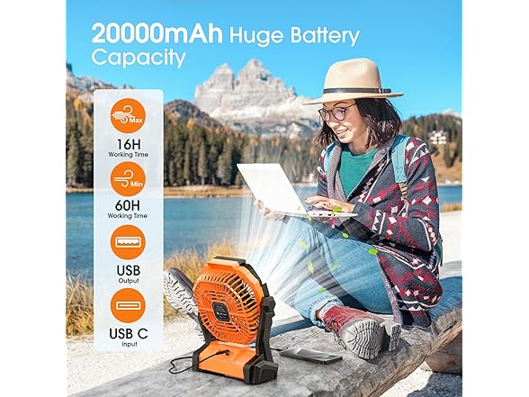 - Strong Wind & Quiet Design for Battery Powered Fans: This portable fan comes with 4 adjustable wind speeds to meet different needs and keep you cool at home or for travel like camping. The brushless motor and upgraded fan blades operate efficiently with minimum noise, and you will have a calm and peaceful experience thanks to its noise level of ≤ 30Db
