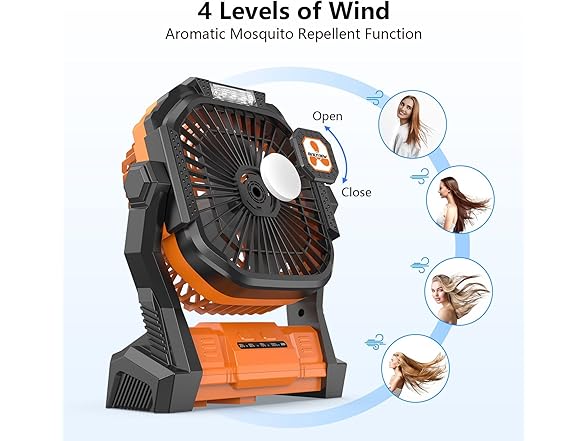- Multi-functional Design: The air outlet angle of the camping fan can be manually rotated by 270°, which allows you to get quiet and strong airflow from different directions, keeping the tent cool and ventilated. Just easily pouring the aromatherapy oil into the aromatherapy cotton pad, the upgraded aromatherapy function will make your sleep more restful and peaceful