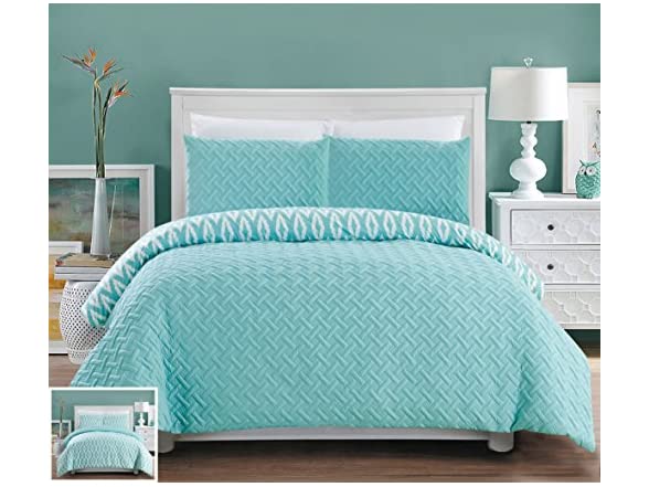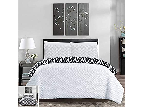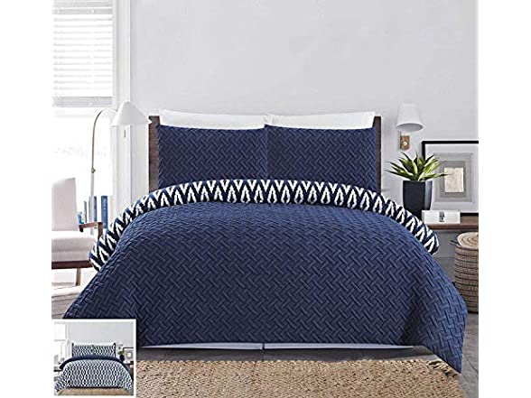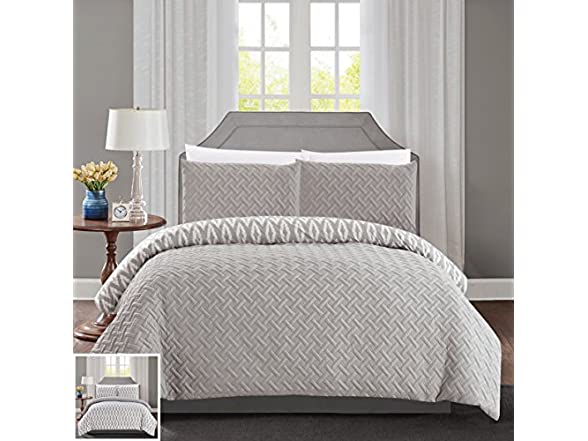Revolutionize your bedroom décor look with the globally inspired reversible Ora Embossed Comforter Cover Set by Chic Home.