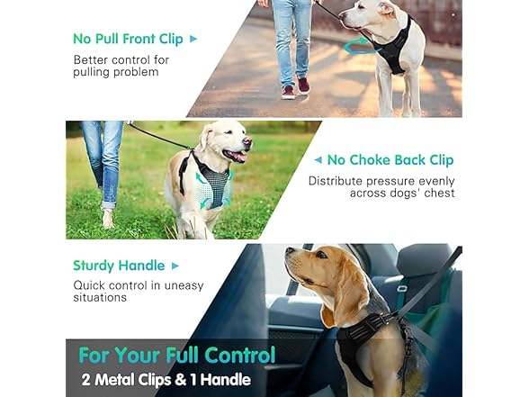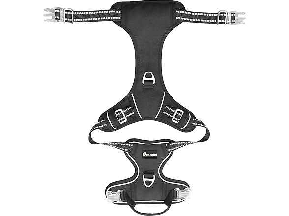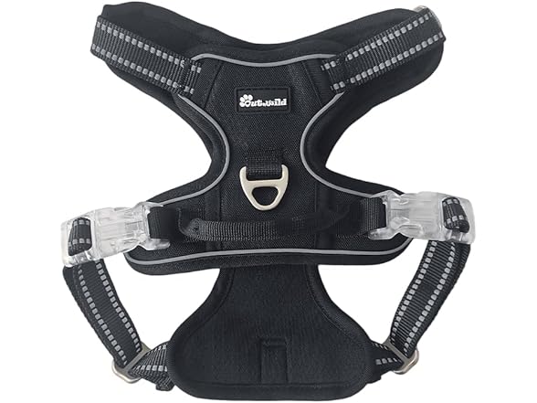 OUT'N WILD Quality No-Pull Dog Harness with 2 Leash Clips. Adjustable Soft Padded Reflective No-Choke Pet Oxford Vest, Easy Control Handle, Premium Transparent Buckles and Perl Nickel Hardware:Black/S