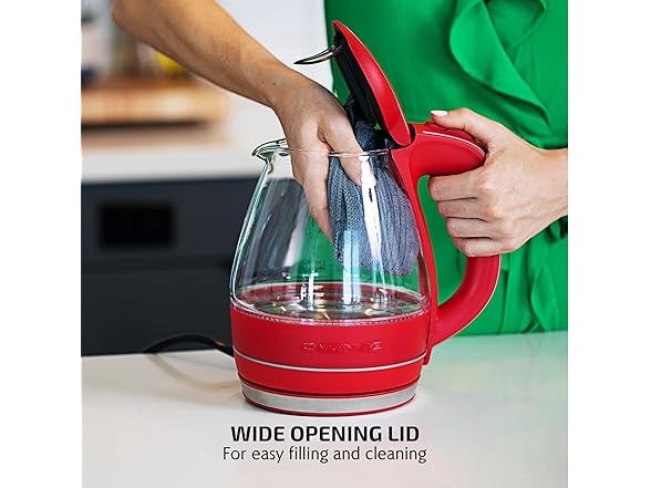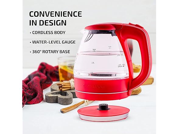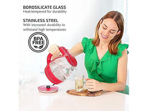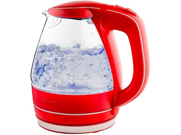 (1) OVENTE Electric Kettle, 1.5L Borosilicate Glass Countertop Water Heater and Boiler for Coffee or Tea, BPA-Free, Auto Shut-Off, Boil-Dry Protection, Removable and Washable Spout Filter, Red KG83R