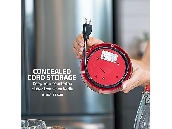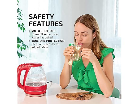 - CONVENIENCE AT ITS FINEST – Enjoy peace of mind with the electric kettle’s auto shut-off function and boil-dry protection. It automatically powers off once the water reaches boiling temperature or if there’s no water left, preventing overheating and dry running. Additionally, it features a 360° rotary base with built-in cord storage for easy use and neat storage.