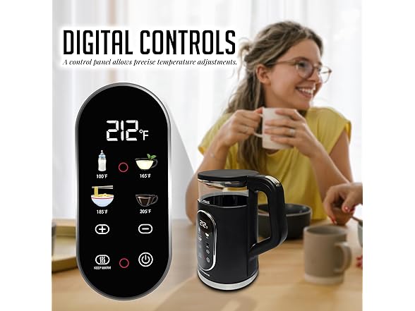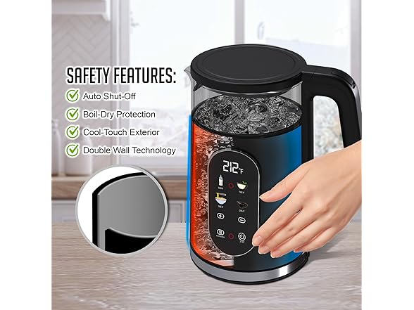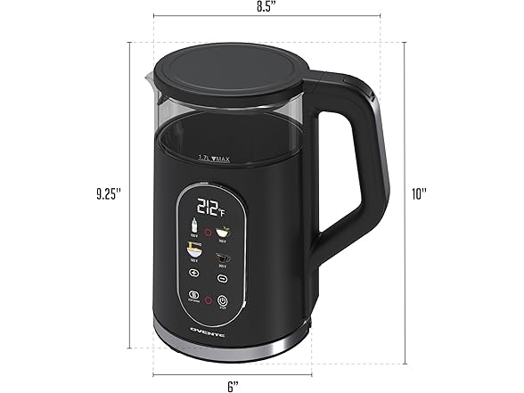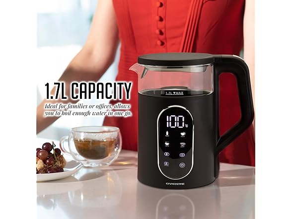 OVENTE Electric Kettle, 1.7L Fast Boiling Water Heater with Digital Touchscreen