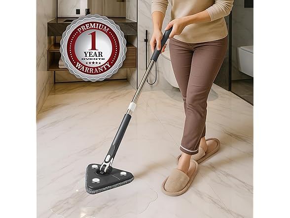 The OVENTE Rotatable Adjustable Cleaning Mop CTM311GY features a 360° rotating triangular mop head designed for maximum reach and efficiency. Its innovative shape easily tackles corners, edges and tight spaces—making it a truly professional cleaning tool for everyday home use. This versatile mop offers quick and efficient cleaning, perfect for daily or weekly upkeep. It effectively removes dust, pet hair, dirt, debris, and more from all types of hard floors, including hardwood, tile, laminate, vinyl, stone and concrete. Equipped with a reusable microfiber cleaning pad, it’s ideal for both wet and dry cleaning. The high-quality microfiber provides excellent absorption and dust-trapping performance and it’s machine washable, lasting through hundreds of uses without losing effectiveness. The automatic wringing system makes cleaning hands-free and effortless—simply pull the handle upward and the mop head automatically closes to squeeze out excess water. The long, durable stainless steel handle ensures stability and strength, preventing bending or breaking during use. Lightweight yet powerful, the OVENTE CTM311GY glides easily across floors and reaches under furniture, along baseboards and even up walls and windows. Its quick-dry design allows for easy storage and fast reuse, making it the perfect all-in-one cleaning solution for your home.