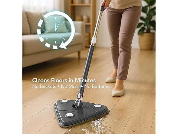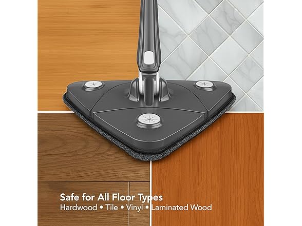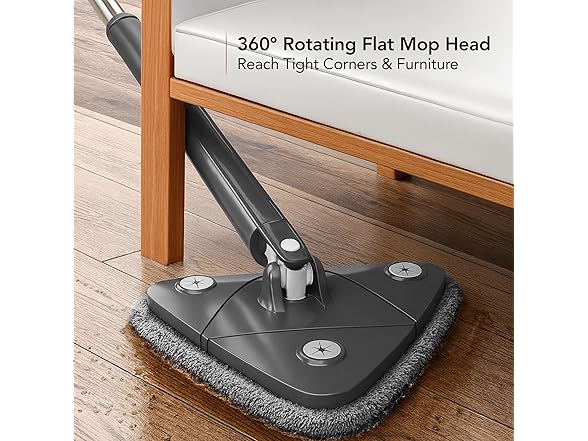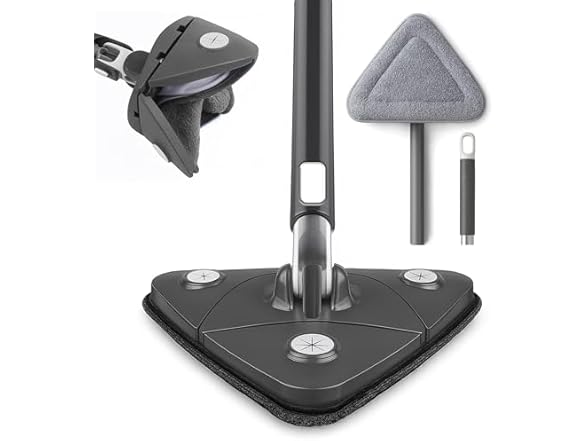 - MAKES CLEANING EASIER — Designed for effortless cleaning, the triangular 360° rotating mop head reaches every corner walls, ceilings and windows. Its push-pull automatic squeezing system mimics hand washing to keep your hands clean and dry.