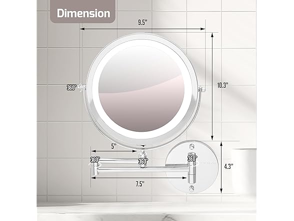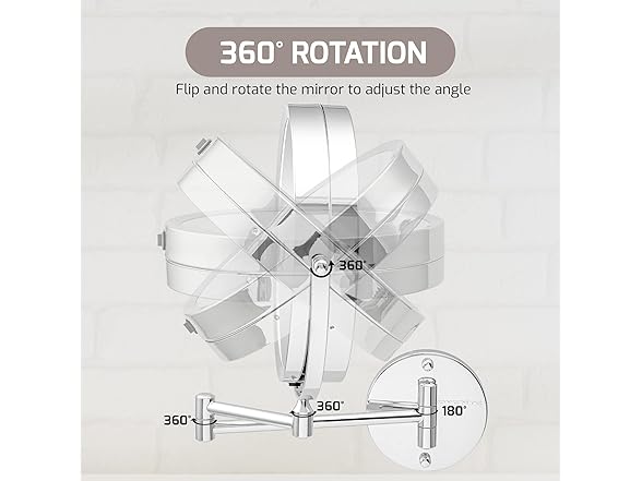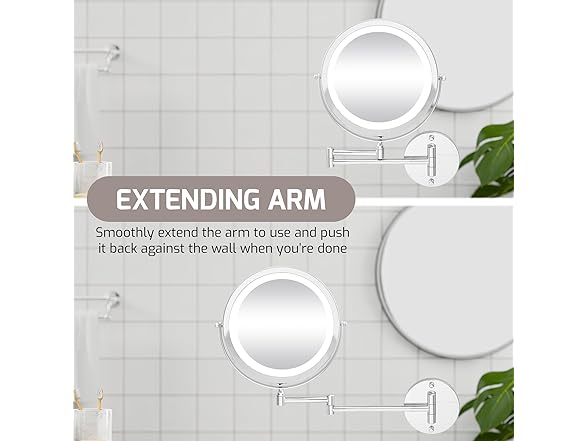 - EXTENDABLE ARM WITH 360° SWIVEL DESIGN – Easily extend the arm up to 13 inches or fold it back to save space. The 360° swivel mirror lets you adjust to the perfect angle for precise makeup, hairstyling and skincare application.