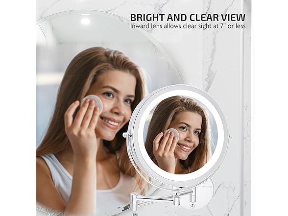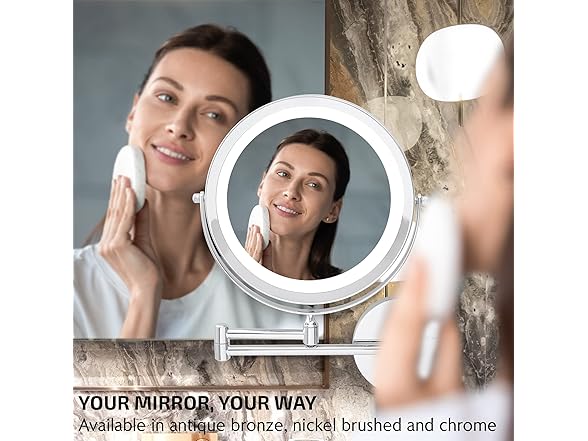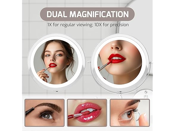 - DUAL-SIDED MAGNIFYING MAKEUP MIRROR – Offers 1x magnification for a full view and 10x for close-up detail work. Perfect for bedrooms, bathrooms, hotels and spas, this wall-mounted vanity mirror enhances any beauty routine.