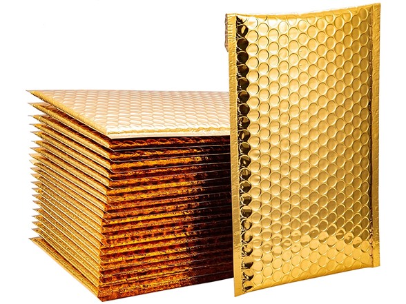 - TEXTURE : Your friends and customers will love these high quality gold padded envelopes. It’s metallic texture gives it a rich look and ensures that shipping envelopes are protected from water moisture and other elements while in transit. It has soft and nice touch.