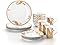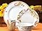 - The dinner plates and cereal bowls feature a more understated look with minimally decorated rims, while the complementing salad plates and mugs add interest to the set with a more prominent and bold pattern