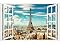 Paris Eiffel Tower Fake Window Wall Stickers Blue Sky and White Clouds Paris Tower Wall Decals Stick and Peel Wall Sticker for Bedroom Living Room Window View Wall Decor Home Decor