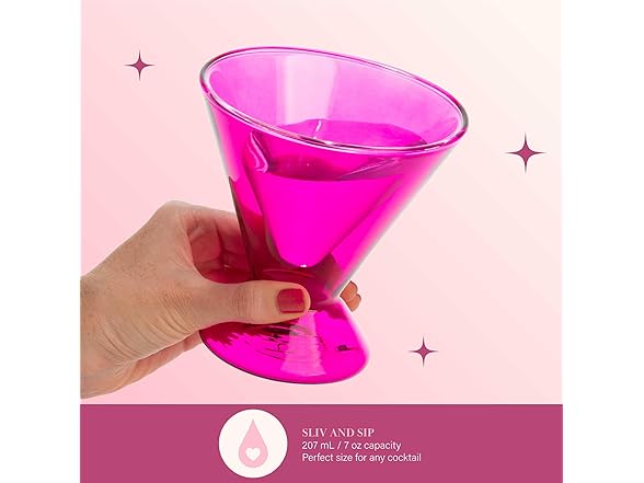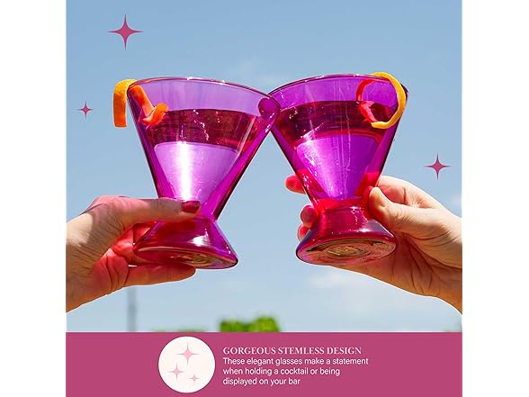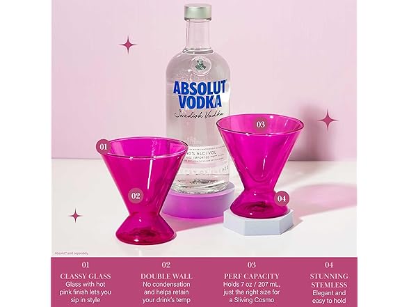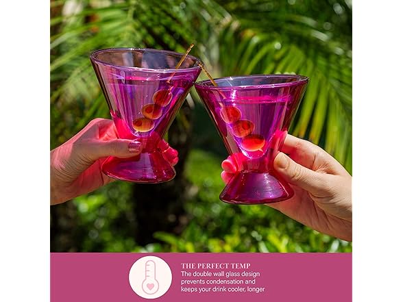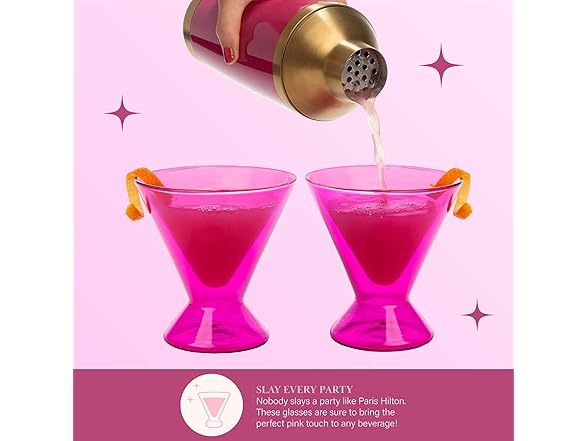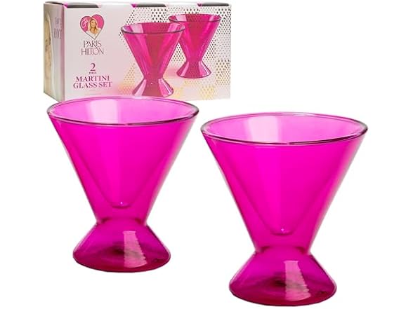 Paris Hilton 2-Piece Martini Glass Set, Double Wall Glass Design, Great for Martinis, Cocktails, Cosmopolitans, Margaritas, 7-Ounce, Hot Pink