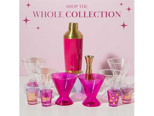 Slay your party like Paris with this Paris Hilton 4 Piece Shot Glass Set, perfect for sliving serving experiences. Featuring a 2-ounce or 59 mL capacity per shotglass, this set ensures your shots are poured with precision and style. Constructed from glass, each shot glass has a sturdy base to prevent tipping and spilling. Whether you're indulging in classic shots or experimenting with your favorite concoctions, these shot glasses are essential for perfecting your party game. The hot pink and light pink finish of these glasses along with the fun sayings in a gorgeous gold metallic finish add a touch of Paris sparkle while you serve. Packaged in an adorable box, this set makes a delightful gift for any occasion, be it a hostess gift, wedding, bridal shower, birthday, Christmas, and more. Elevate your serving game and ensure your next gathering is unforgettable with the Paris Hilton 4 Piece Shot Glass Set.