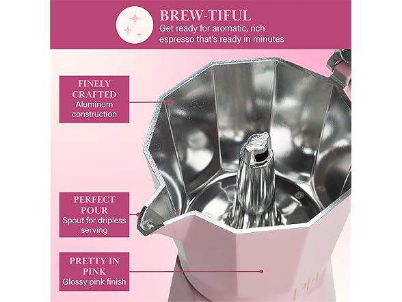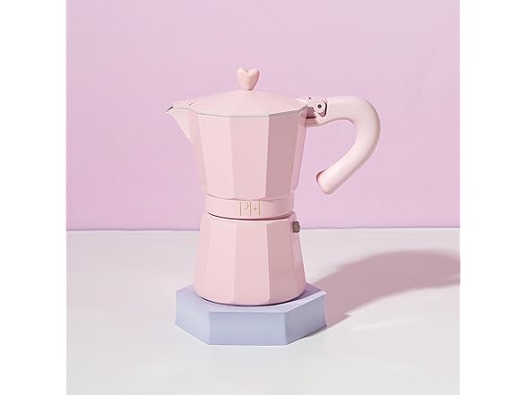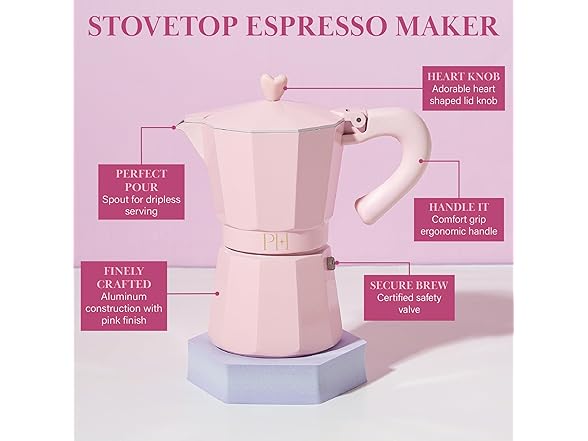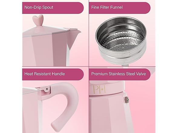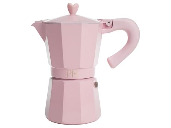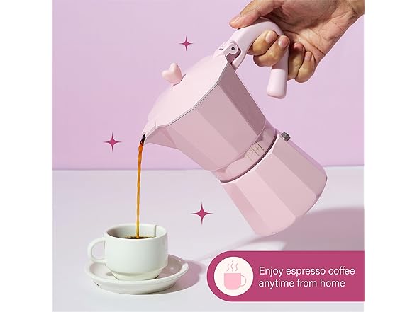 Paris Hilton Stovetop Espresso and Coffee Maker, Italian & Cuban Style Coffee Pot with Iconic Heart Knob, Perfect for Rich Aromatic Espresso, Makes up to 6 Espresso Cups, Pink