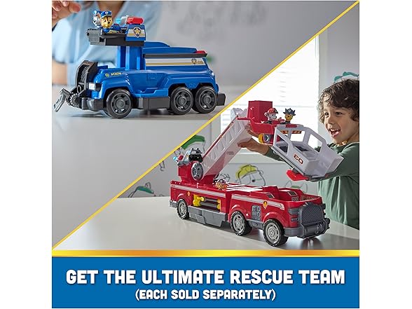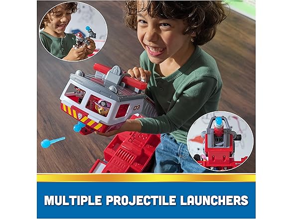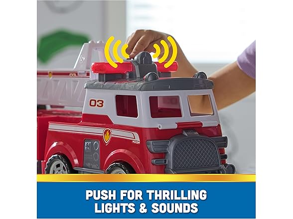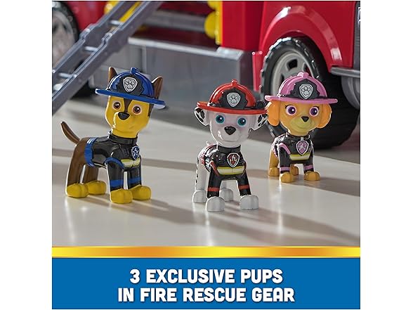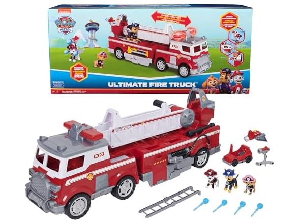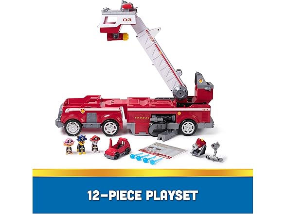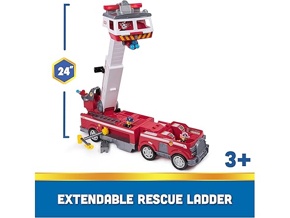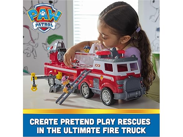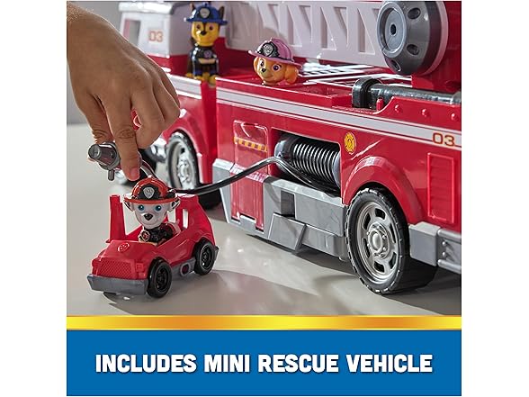 - FIRE TRUCK TOY: Marshall’s Ultimate Rescue Firetruck includes a 2 ft. ladder, a mini fire cart, a working claw arm & a retractable fire hose. Set features everything you need for thrilling adventures