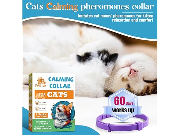 - [Long - Lasting Calm] Each cat pheromone collar provides up to 60 days of continuous calming effect. Waterproof and durable, it doesn't need to be removed during baths or rainy outings. With a 4-pack, you can ensure your cat enjoys up to 240 days of anti-anxiety effects, cat calming collars for indoor catshelp anti aggression for cats and anti meow for catsand excessive meowingand calming cats in heat.