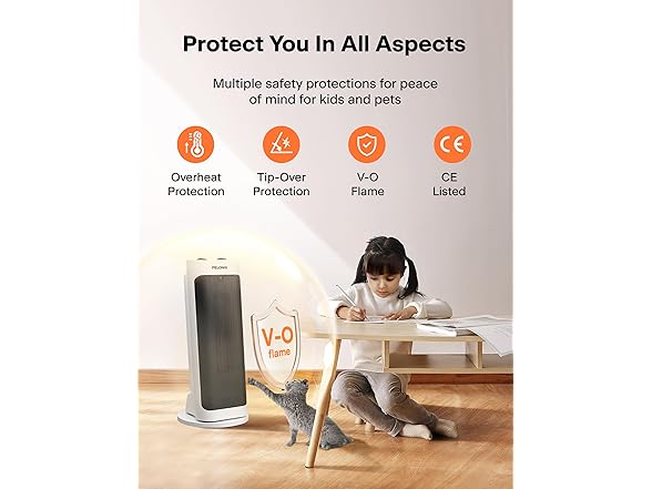 - SAFE TO USE - The PTC electric heater made of cool touch ABS UL94 V0 flame resistant material. US standard socket can directly plug into an outlet without any adapter or extension cord. Overheating protection and tip-over switch ensures safe use.