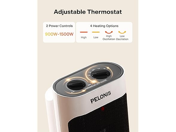 - PROGRAMMABLE THERMOSTATS - Adjustable thermostat for optimal heating temperature with easy to use control dial. Choose High or Low heating with oscillation function to warm up your desired area.