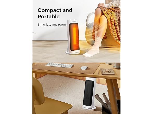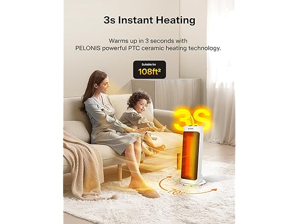 - FAST AND EFFICIENT HEATING - Our ceramic heater is equipped with ceramic heating element and maximum 1500W power. Quickly heats-up to 70°F in 3 second with reliable ceramic heating technology, offering a comfortable and consistent temperature.