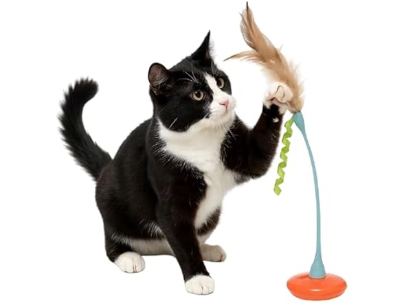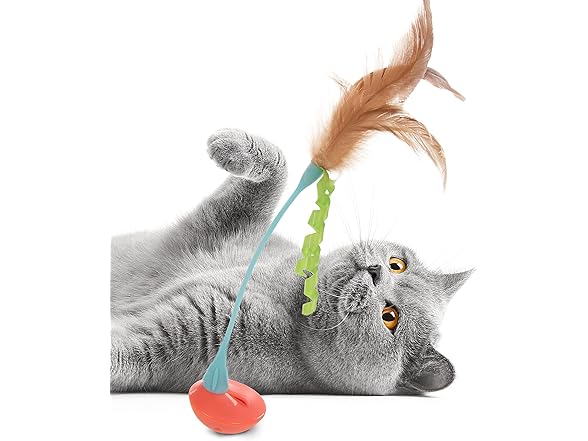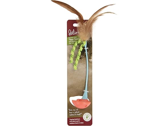 Petlinks Tippy Teaser Self Righting Feather Toy for Cats & Kittens, Rocks & Sways, Fun & Engaging Play - Multi Color, One Size