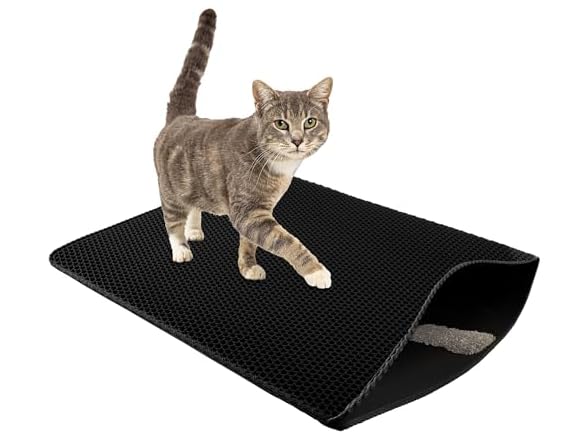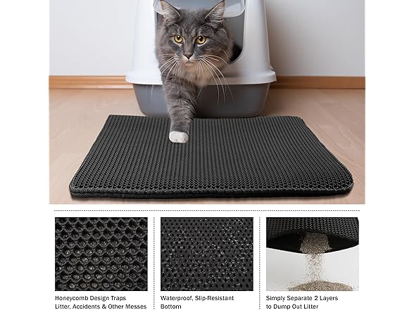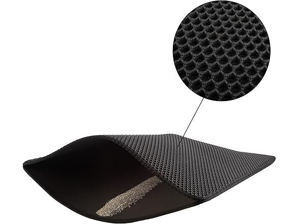 - INNOVATIVE HONEYCOMB DESIGN - The litterbox mat is made with a honeycomb design that traps litter, accidents, and other messes between the double layers, preventing it from getting on your floors, carpet, and furniture for easy cleaning.