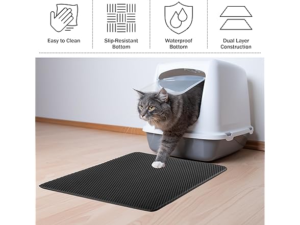 - CONVENIENT FEATURES - This cat litter pad features a slip-resistant bottom to ensure it doesn’t slide around while your kitten, adult, or senior cat walks on it. The bottom layer of this mat is waterproof to protect your floors from liquids and stains.