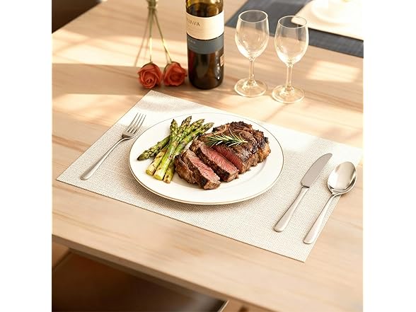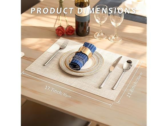 - 【Table Anti-Slip Design】: The bottom of the placemat is made of non-slip material. When laid on the table surface, it fits closely to the tabletop and is not easy to shift. Even if you place a cup of hot water or a heavy ceramic dinner plate on the placemat, it greatly reduces the risk of slipping, avoiding food spills or hot water splashes caused by overturned tableware, making your dining experience more secure.