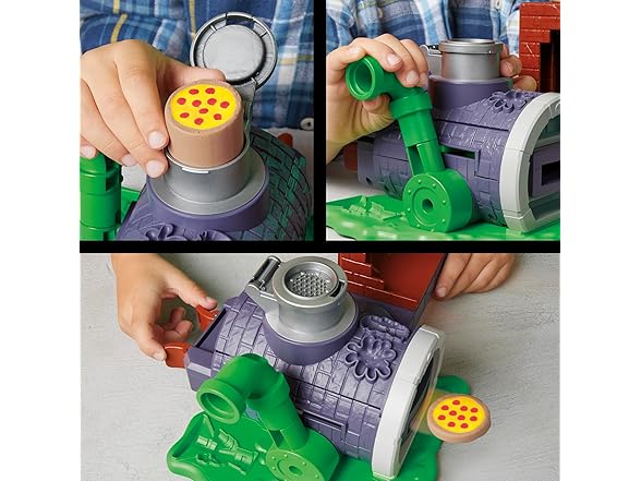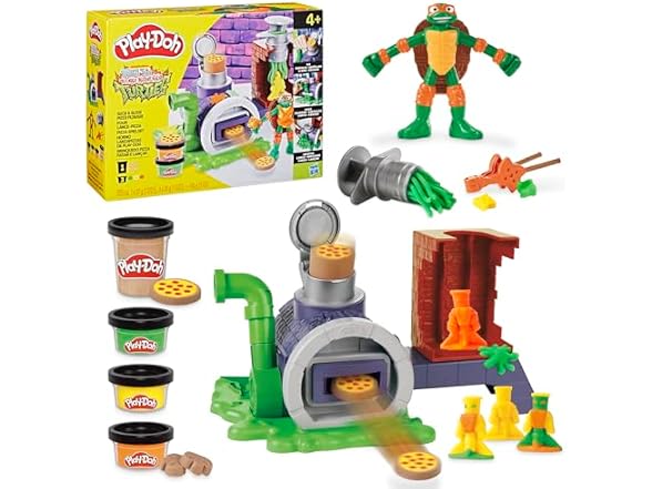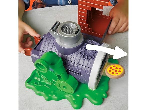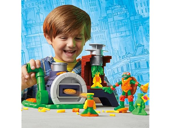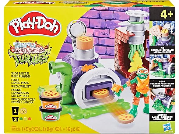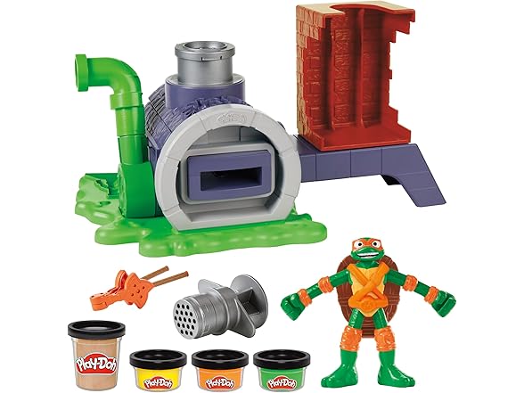 - PLAY-DOH PIZZA SEWER BLASTER: Lauch into a Play-Doh pizza-powered adventure with the bendy Michelangelo figure and epic pizza blaster action