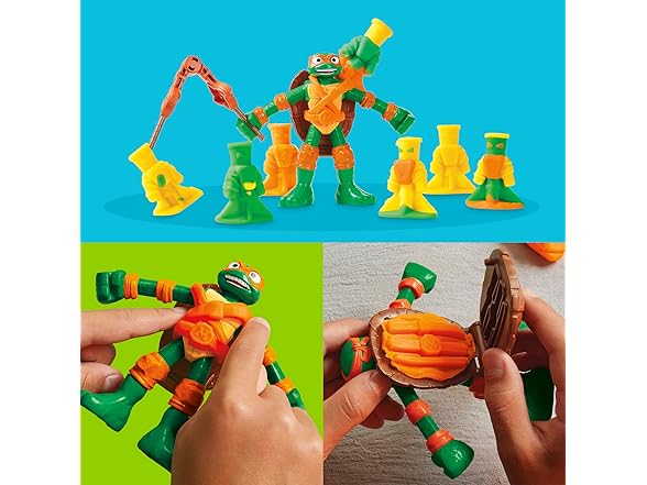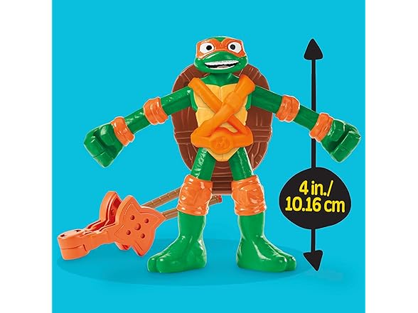 - BENDY MICHELANGELO FIGURE: The flexible, customizable 4-inch (10.16 cm) TMNT Michelangelo Ninja Turtle toy figure has wiggly arms and legs for sensory play