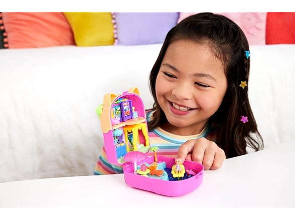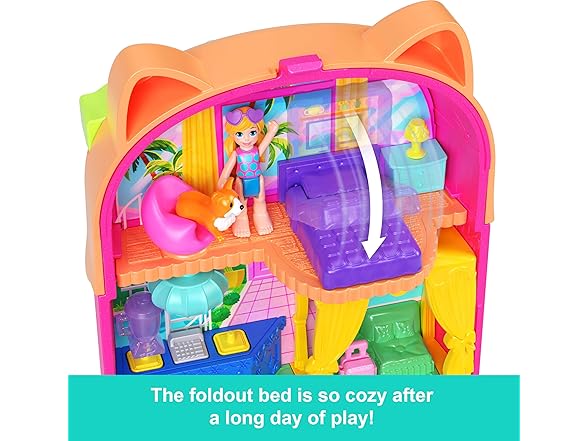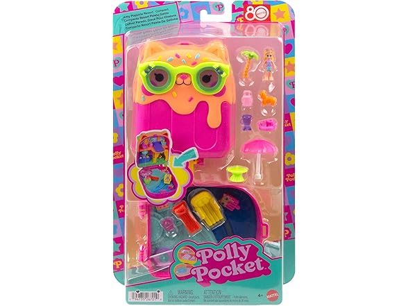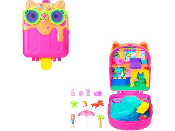 Polly Pocket Dolls and Playset, Kitty Popsicle Resort Compact, Travel Toy with 1 Micro Doll, Pet Puppy & Themed Accessories
