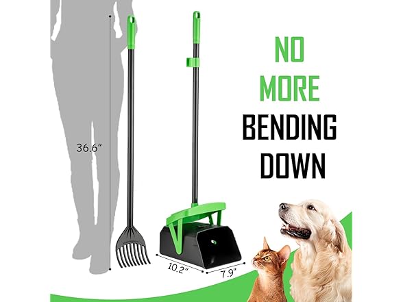 - No more bending over or stooping down to pick up your pet’s waste - This 36.6inches long handle dog pooper scooper allows you to pick up waste without having to bend down. The extended handle allows you to maintain an upright posture while reaching the waste, reducing strain on your back and knees. Making it more comfortable and convenient to use.