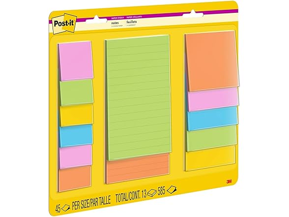 - GET ORGANIZED: Pack includes 1 7/8 in. x 1 7/8 in., 3 in. x 3 in. and lined 4 in. x 6 in. sticky notes, great for your office, work area, or classroom