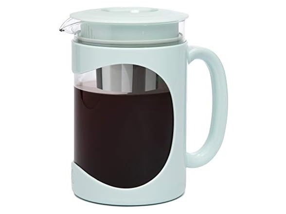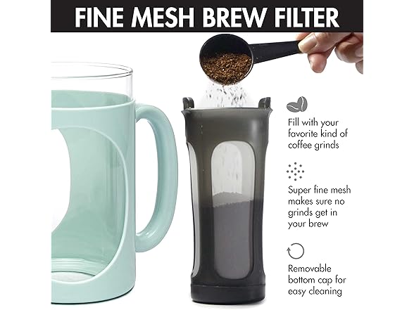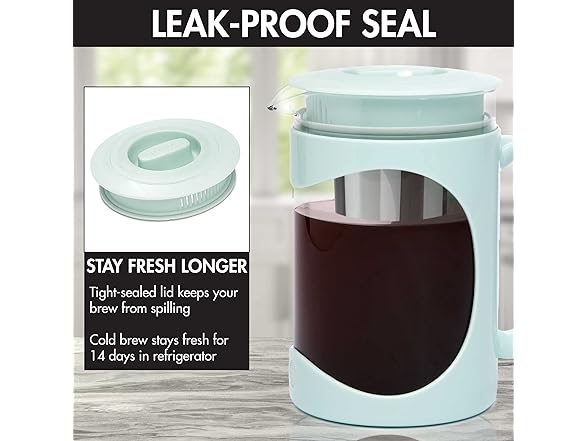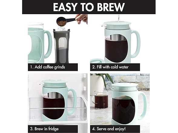 - STREAMLINED DESIGN – Simply add coffee grounds to the brew filter, pour cold water over the coffee, and let brew overnight or to desired strength. Serve cold, over ice or hot. Add milk, creamer, syrups or flavorings to fit your taste preferences, or add ice for an extra refreshing cup of coffee.
