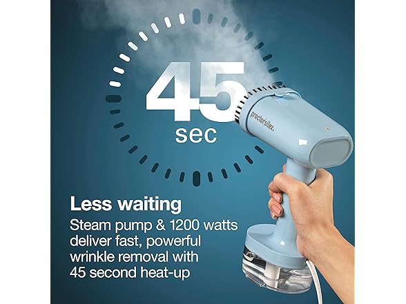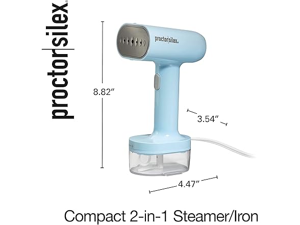 Proctor Silex Compact Travel Iron & Garment Steamer for Clothes, Ready in 45 Seconds for 7 Minutes of Continuous Use, Portable and Lightweight, Vacation Essentials, 1200 Watts, 120 ml Water Tank, Blue
