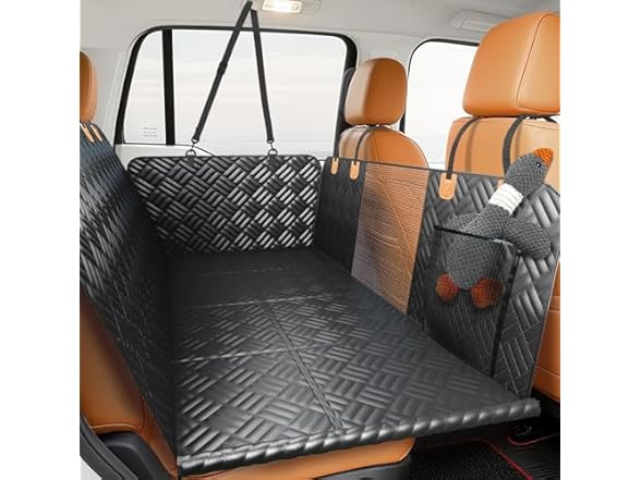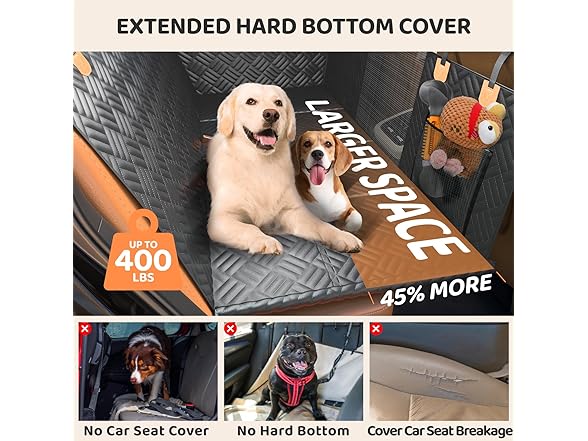 - 【EXPANDED SPACE】 The dog car seat cover with hard bottom extends the backseat into a car bed. Enabling complete coverage of the rear area. The back seat extender provides your dogs with maximum space. Suitable for dogs of all breeds, this makes the back seat so comfortable for both of them to relax and actually lay down on long car rides.
