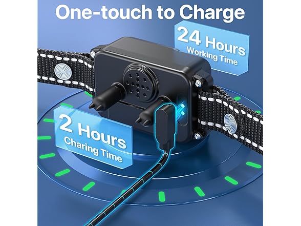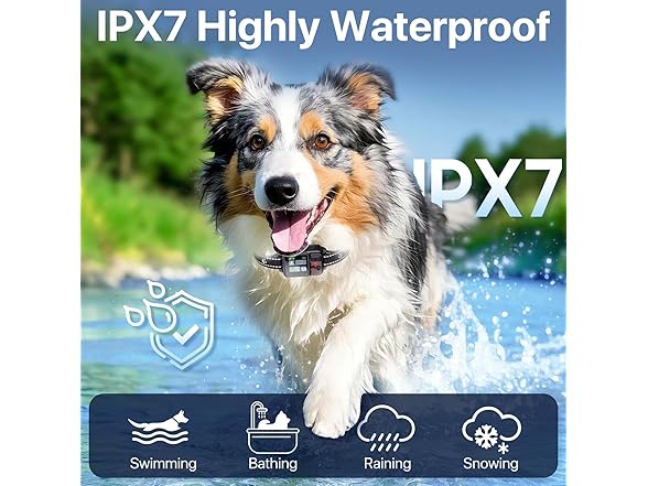 :The gps dog collar fence system features a 1000mAh rechargeable battery that fully charges in 2 hours and lasts up to 24 hours. The IPX7 waterproof design ensures reliable performance in all outdoor conditionsβwhether itβs rain, snow, sprinklers, or swimming. With this electric dog fence system, your dog can freely play in the water, grass, or rain without interruption.