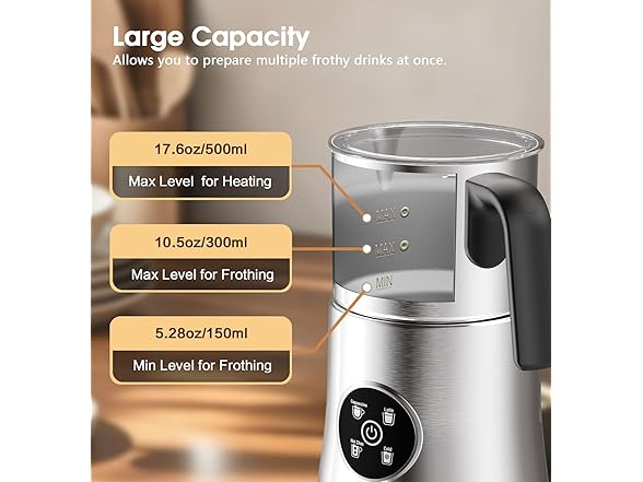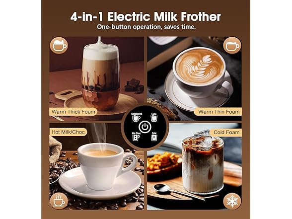 - Easy One-Touch Control: With its simple button operation, the milk frother steamer lets you switch between light warm foam, thick warm foam, cold foam, or heating milk, making your drink prep effortless