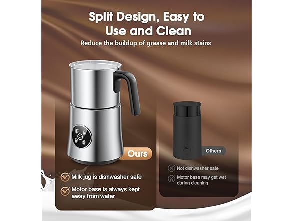 - Compact & Safe Design: Designed with a sleek, space-saving body, the coffee frother features auto shut-off and a non-stick interior, ensuring both safe use and easy maintenance