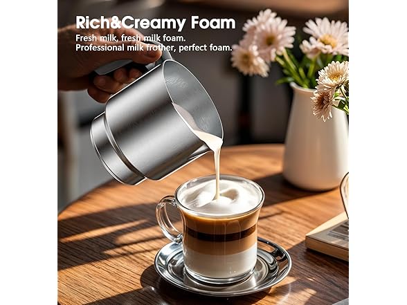 - Creamy Froth at Home: Create barista-quality foam for lattes, cappuccinos, and hot chocolate in minutes with this powerful milk frother and steamer
