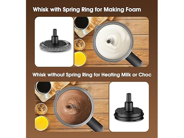 - Two Frothing Whisks Included: The frother for coffee comes with two whisks; you can store one as a backup for future use. When heating milk or hot chocolate, please remove the spring from the whisk