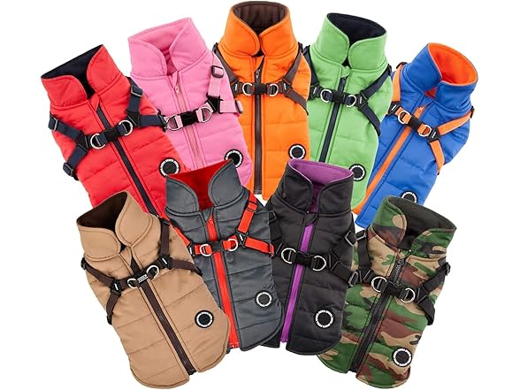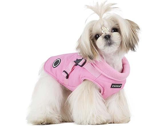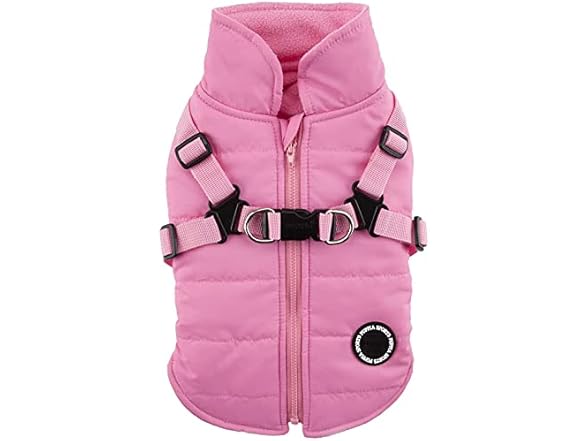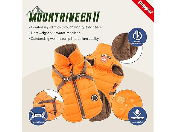 Puppia Mountaineer Winter Dog Coat with integrated harness No Pull Cold Weather Waterproof Warm Fleece Back Zipper for Small & Medium Dog